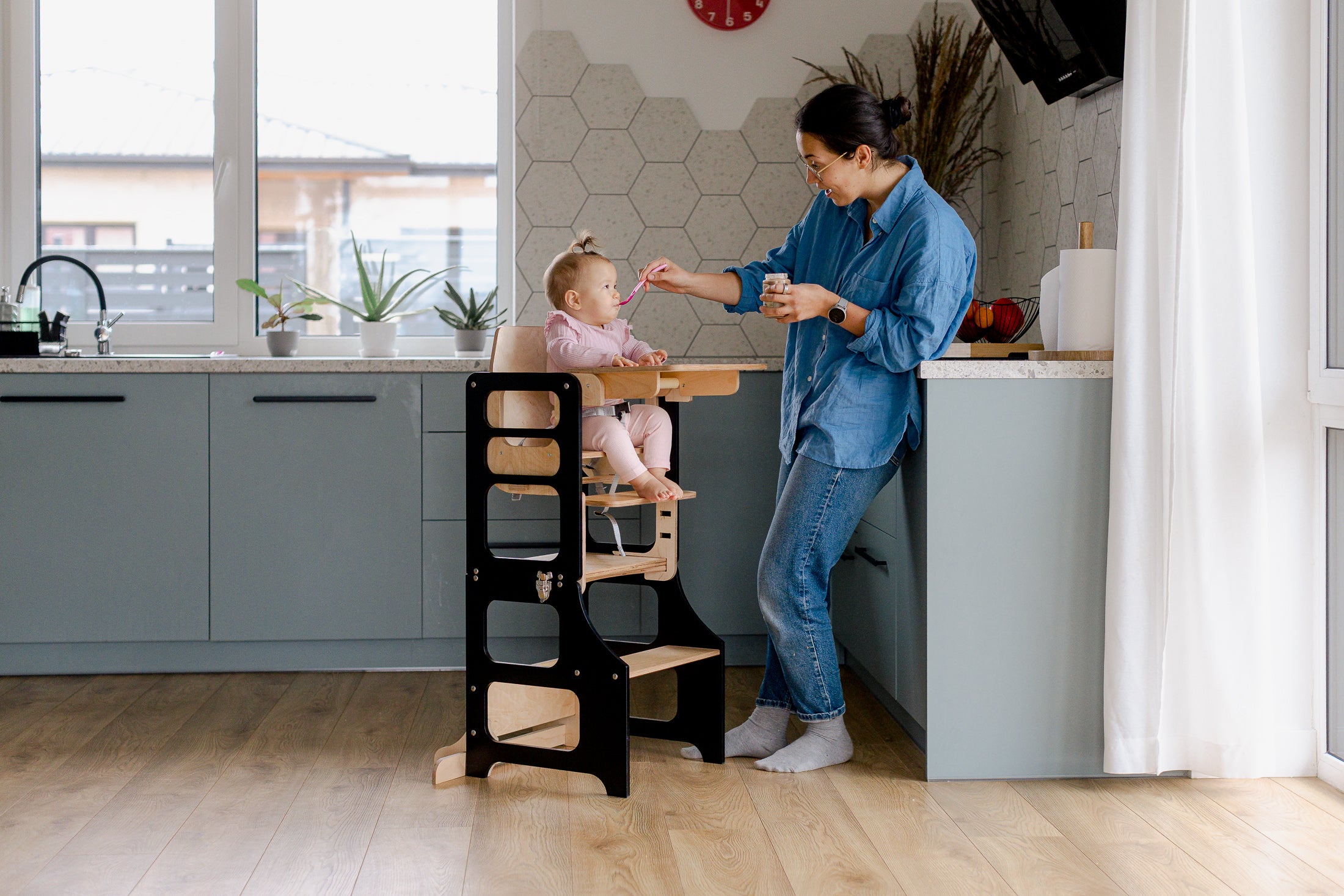 Mid-Century modern foldable kitchen tower high chair