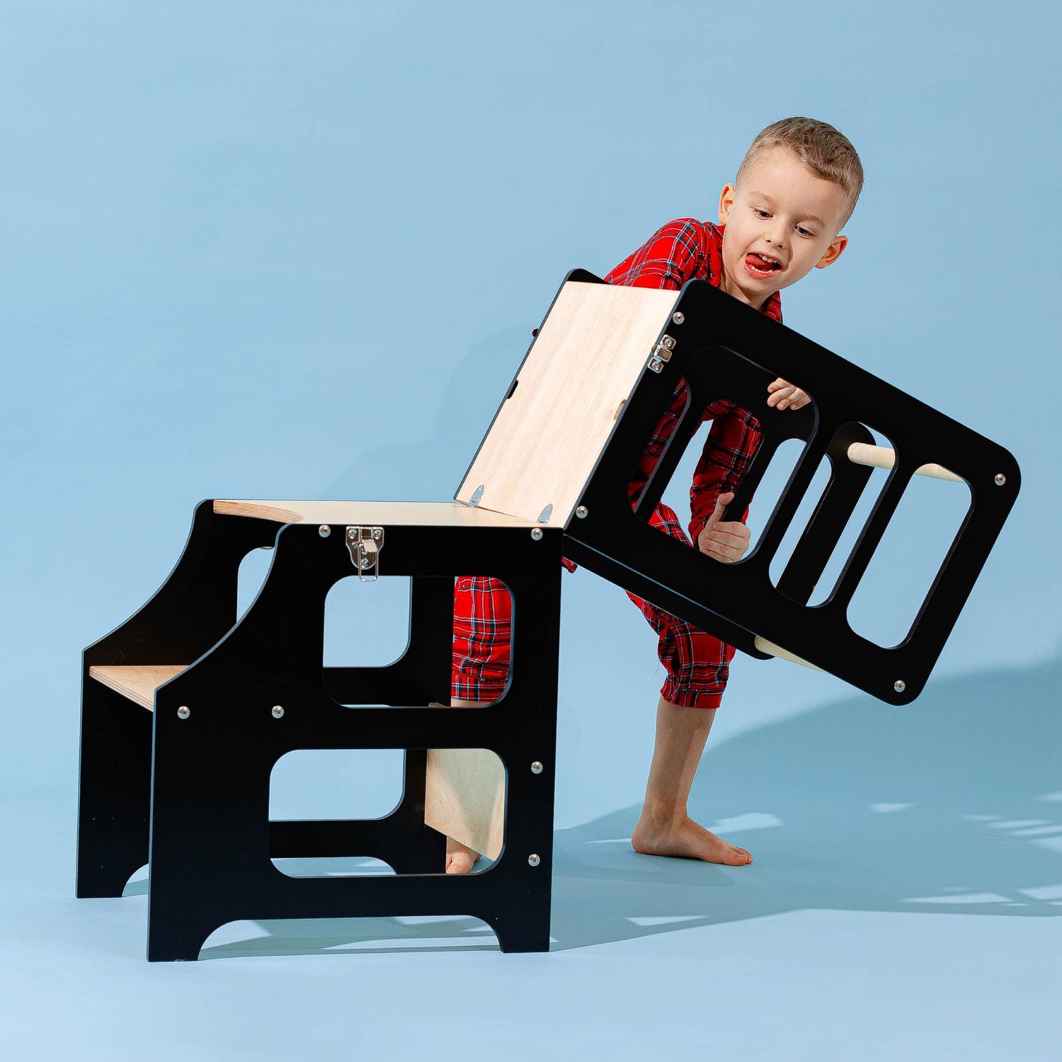 For those who are looking for both kitchen towers and table and chair sets for children, Folding Kitchen Tower is a way to go - use it as a kitchen tower or fold it and use as a table with a chair!