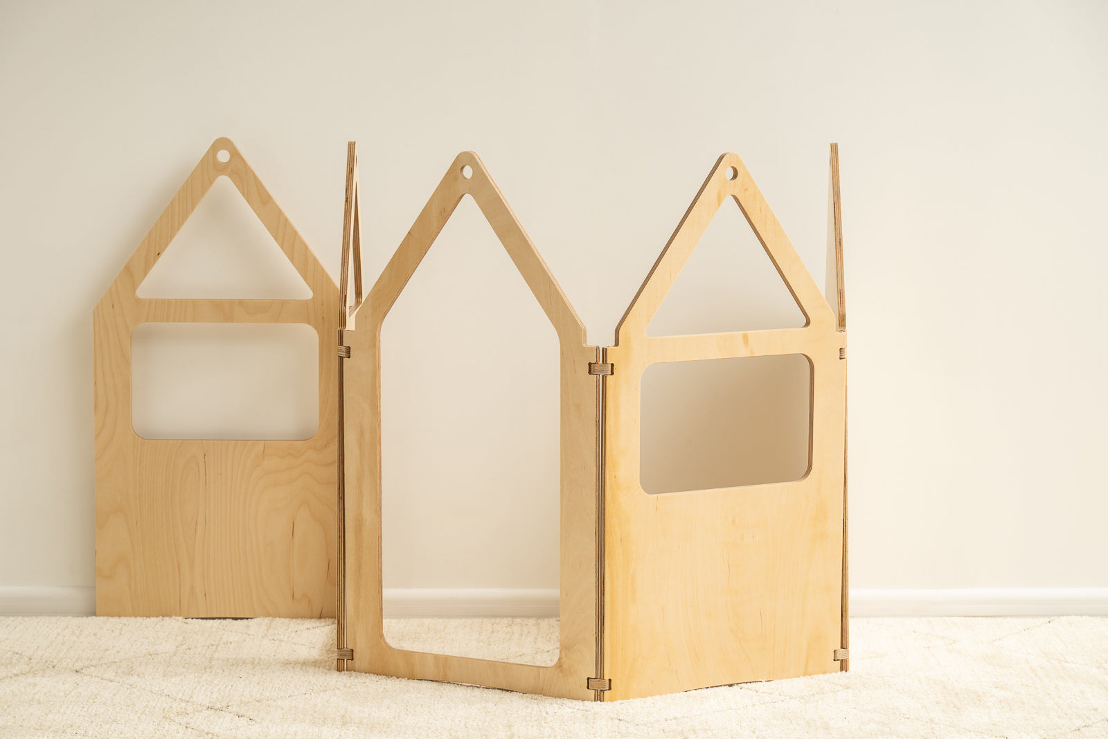 Cette maisonnette en bois à 5 sections se plie de mille façons, offrant une infinité de possibilités pour stimuler l'imagination. Son design épuré et moderne en fait une alternative écologique aux structures de jeux traditionnelles et s'intègre harmonieusement dans toutes les pièces. Une fois le jeu terminé, elle se replie facilement pour un rangement compact et rapide. Que ce soit pour construire une cabane douillette avec des couvertures ou créer leur propre univers imaginaire, la Maison Zig Zag est facile à monter et conçue pour inspirer une créativité sans limites.